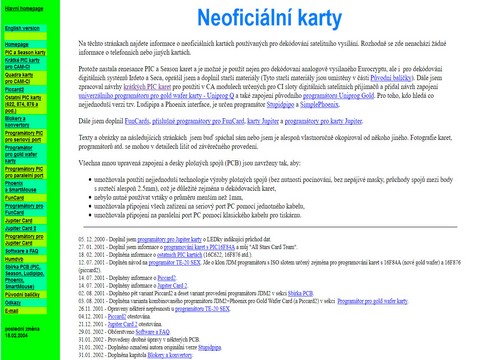 Na těchto stránkach byly informace o neoficiálních kartách používaných pro dekódování satelitního vysílání.